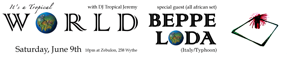 The club is Typhoon and the presiding DJ is Beppe Loda. Near the booth, a few awkward looking guys mill around, sneak-peeking at the spinning platters, and jotting in note pads names like Richard Wahnfried, League Unlimited, Sheila Chandra, and Zazou Bikaye.